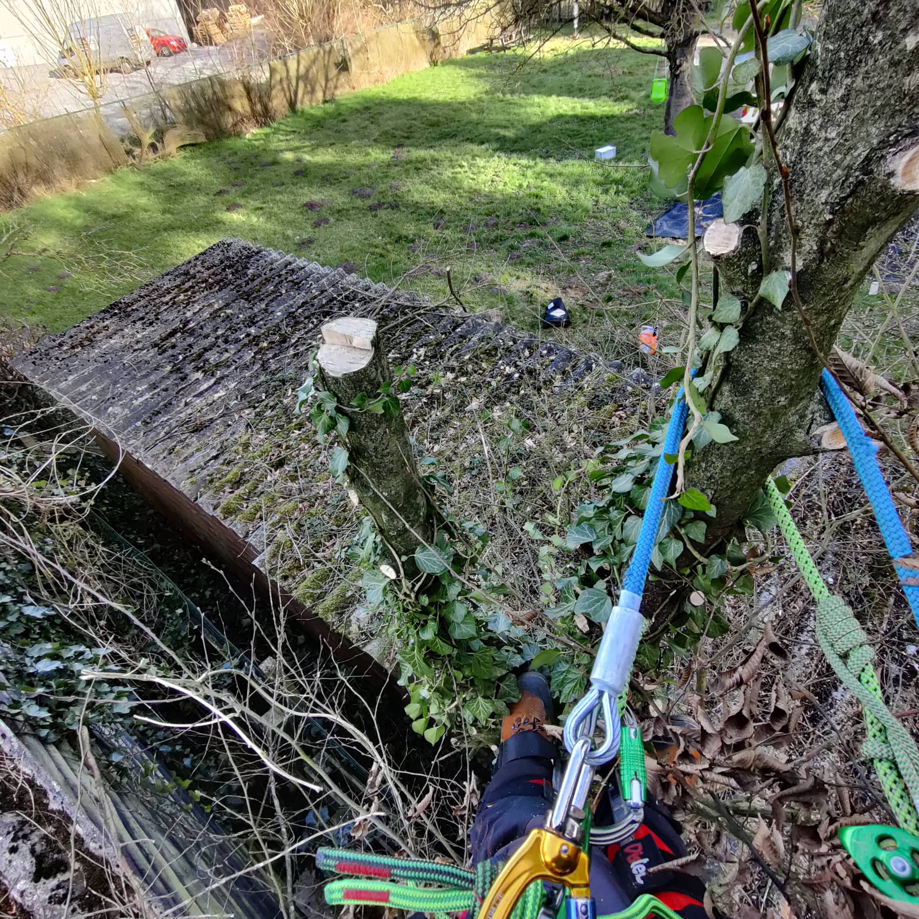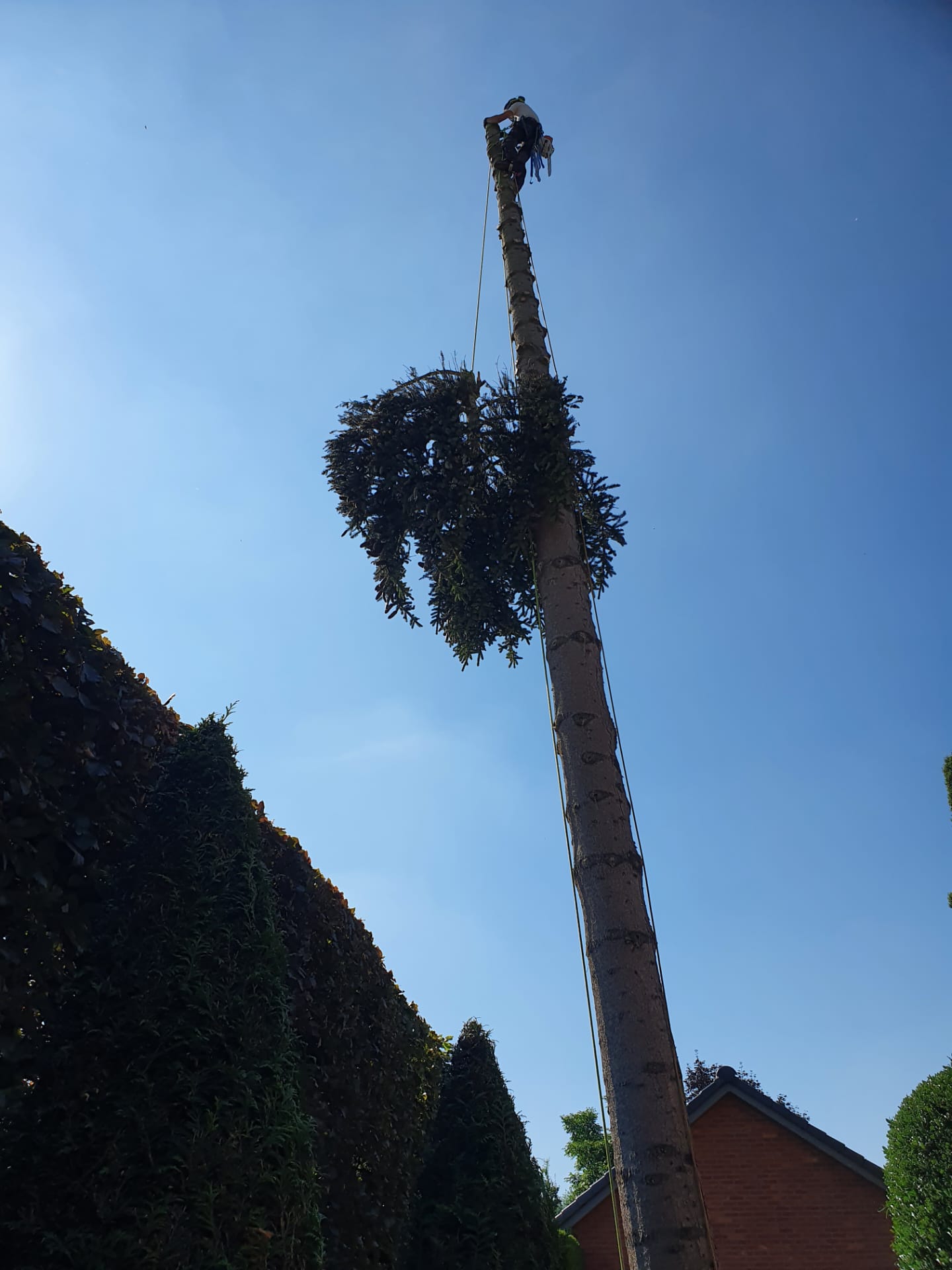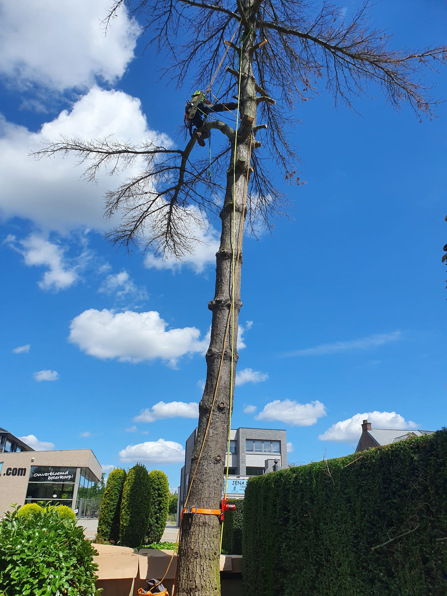 Als er genoeg ruimte is kan er gekozen worden om de boom veilig te laten vallen, als dit niet mogelijk is kunnen we de boom demonteren en de takken laten zakken door middel van touwen. Dit proces gebeurt al klimmend.